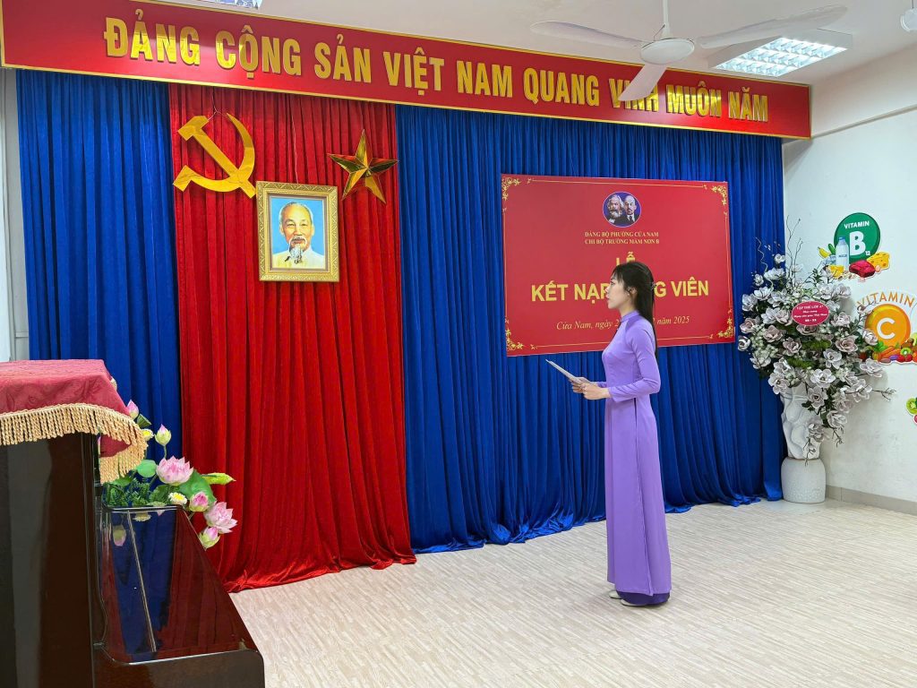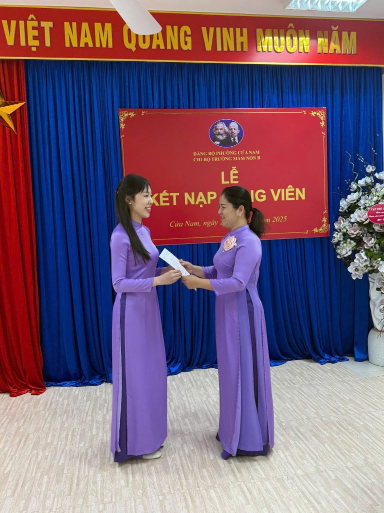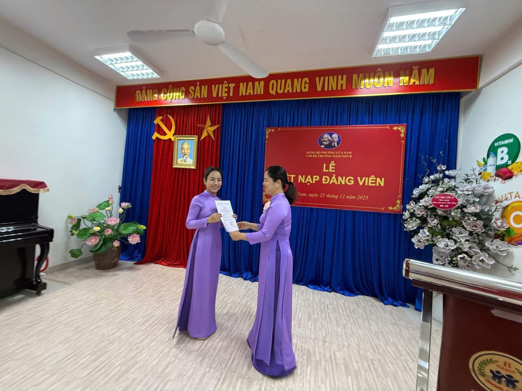 🎉 🎉Hôm nay, Chi bộ Trường Mầm non B long trọng kết nạp Đảng viên mới cho cô Phan Thị Ngọc Loan và cô Lê Ngọc Mỹ – những giáo viên tiêu biểu, trách nhiệm và giàu nhiệt huyết.✨ Đây là niềm vinh dự lớn lao, khẳng định sự phấn đấu bền bỉ của hai cô và cũng là niềm tự hào của tập thể nhà trường.Chúc các cô luôn vững lý tưởng, lan tỏa năng lượng tích cực và tiếp tục đóng góp xây dựng Trường Mầm non B ngày càng phát triển vững mạnh! ❤️